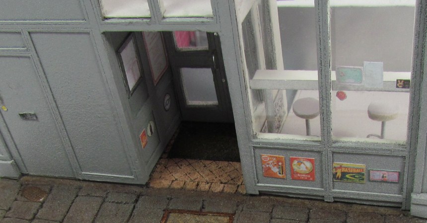 Built at 1:30 scale, the model is a relief of the front of The Lamb Pub.