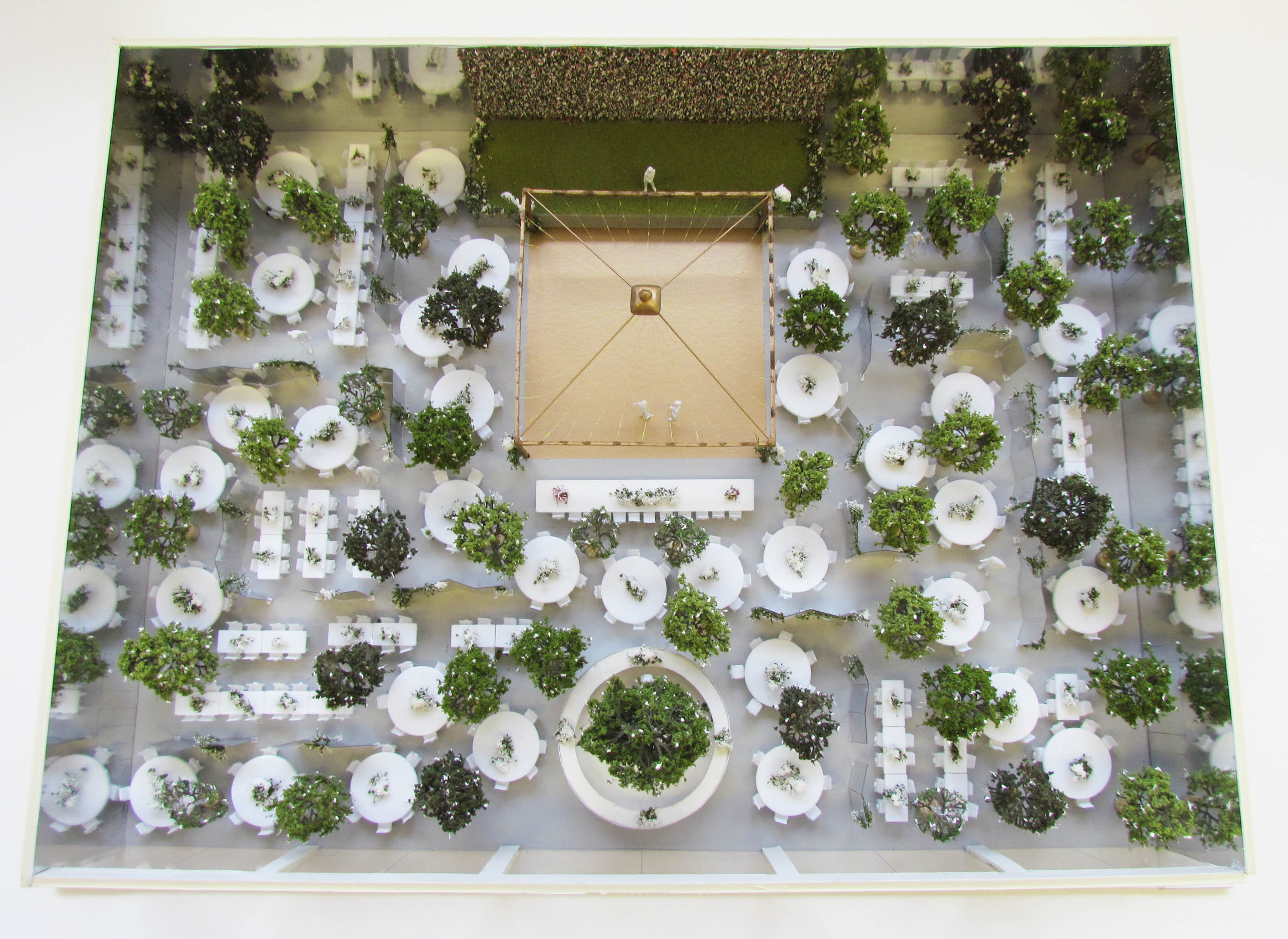 A 1:100 scale model, depicting an event organisers proposal for a large wedding in Baku, Azerbaijan. The model required a degree of imagination, as no detailed plans existed. The intention of a model like this is to create an overall image of the designer’s vision for the event, rather than providing exhaustive detail.